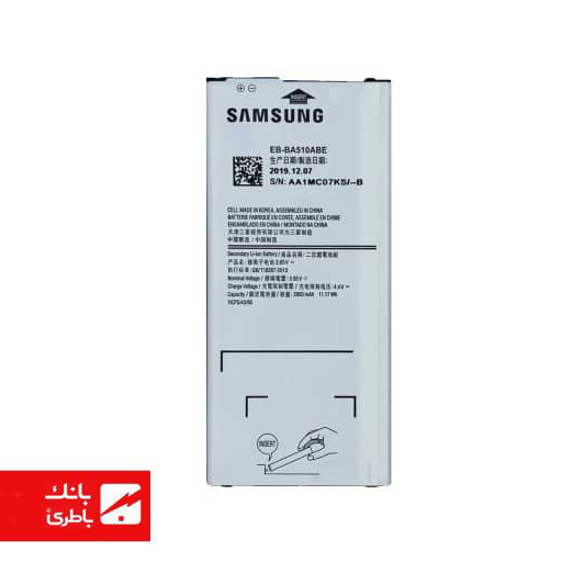 باتری گوشی سامسونگ A510 با کدفنی EB‑BA510ABE با 3 ماه گارانتی میباشد. این باتری با ظرفیت 2900 میلیآمپری از نوع لیتیوم‑یون (Li‑ion) با ولتاژ 3.85 ولت میباشد که دارای گارانتی تعویض نیز است.