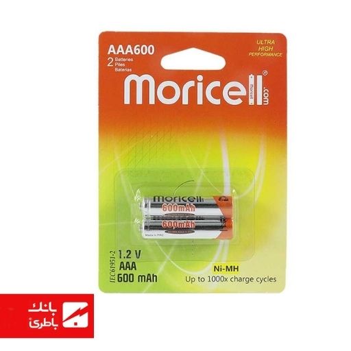 باتری نیکل متال نیمقلمی موریسل 600 میلیآمپرساعت بسته 2 عددی